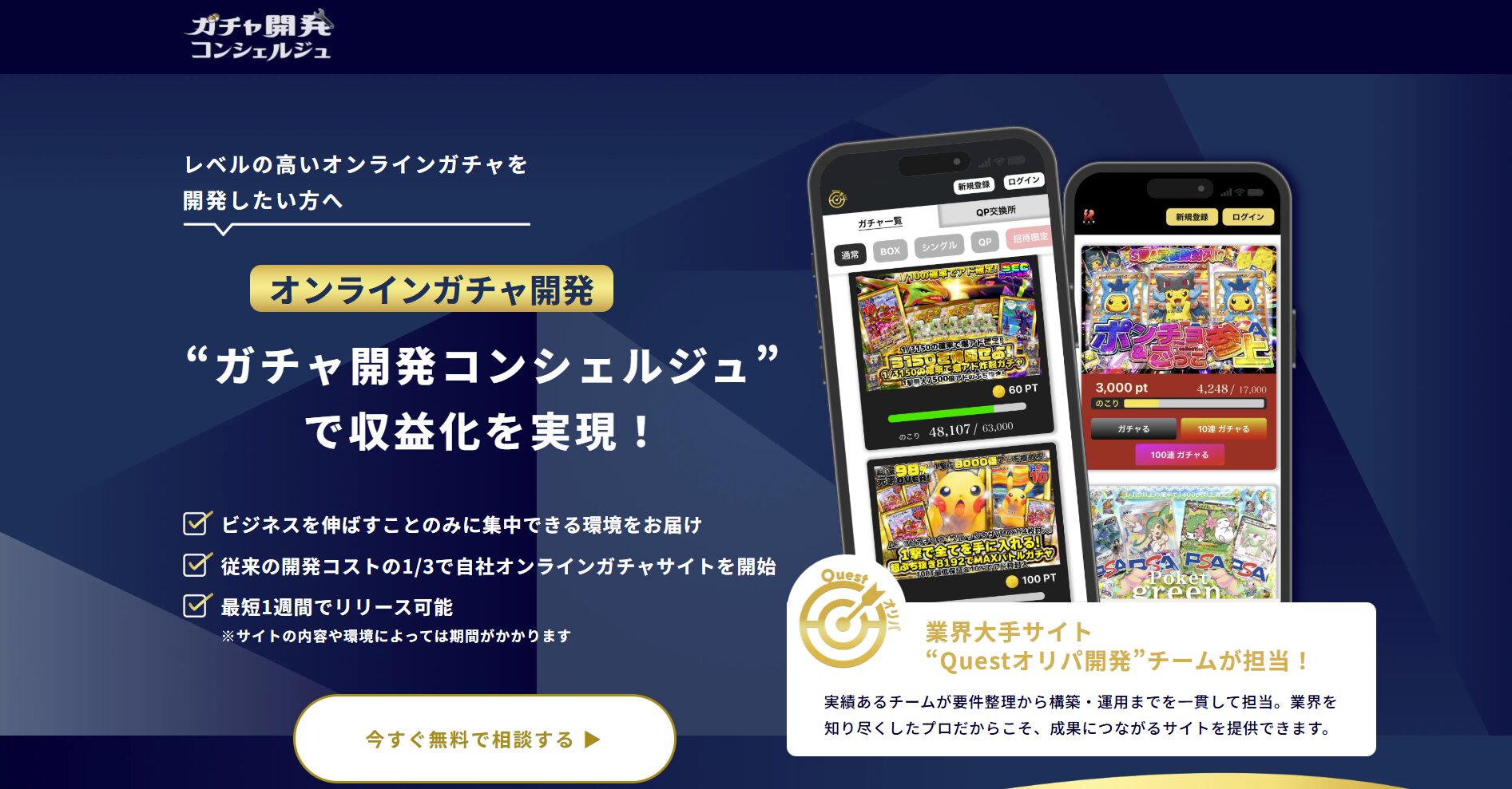 業界未経験でも始めやすく、最短翌日から運用開始できるオンラインガチャの提供をします。開発だけでなく、その後の運用やサポート、トラブル発生なども素早く対応いたします。 -